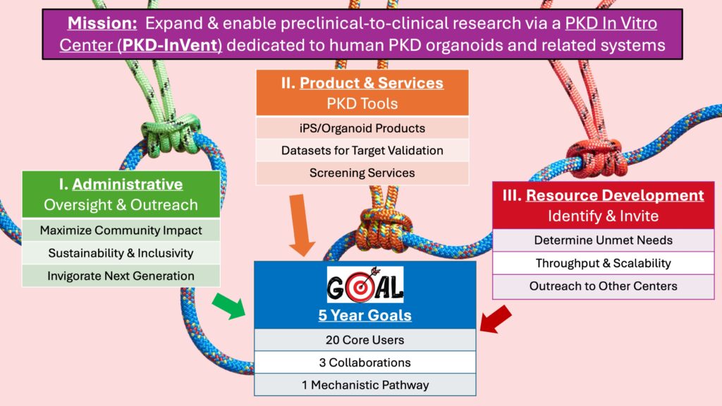 PKD-InVent (PKD In Vitro Center) is dedicated to the development of polycystic kidney disease (PKD) organoids and related in-a-dish technologies. The Center, founded in 2025 with a grant from the National Institutes of Health, builds upon our research-enabling discovery demonstrating that human mini-kidney structures grown in a petri dish can exhibit symptoms of polycystic kidney disease (‘PKD in a dish’).